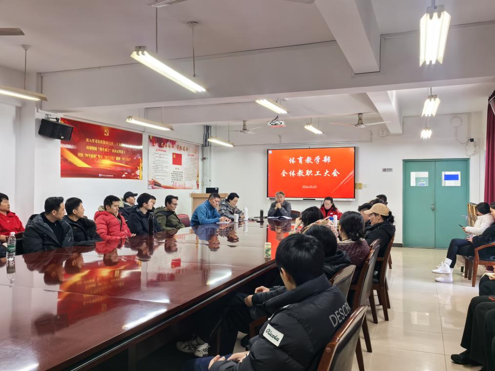 为深入贯彻落实学校第七届教代会第八次会议精神,2026年3月3日,体育教学部召开全体教职工大会,部署新学期重点工作。会议由直属党支部书记张宝良主持。